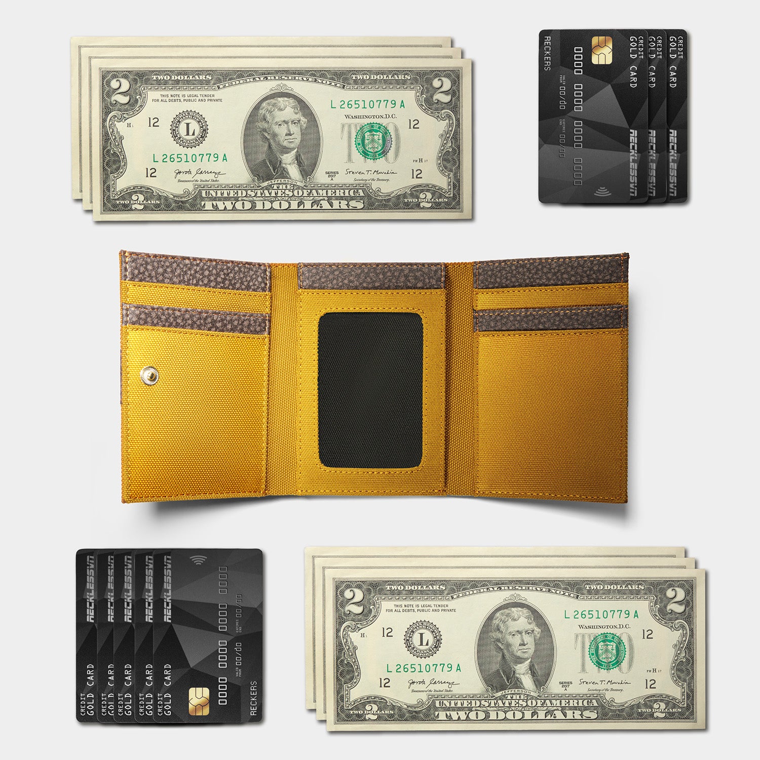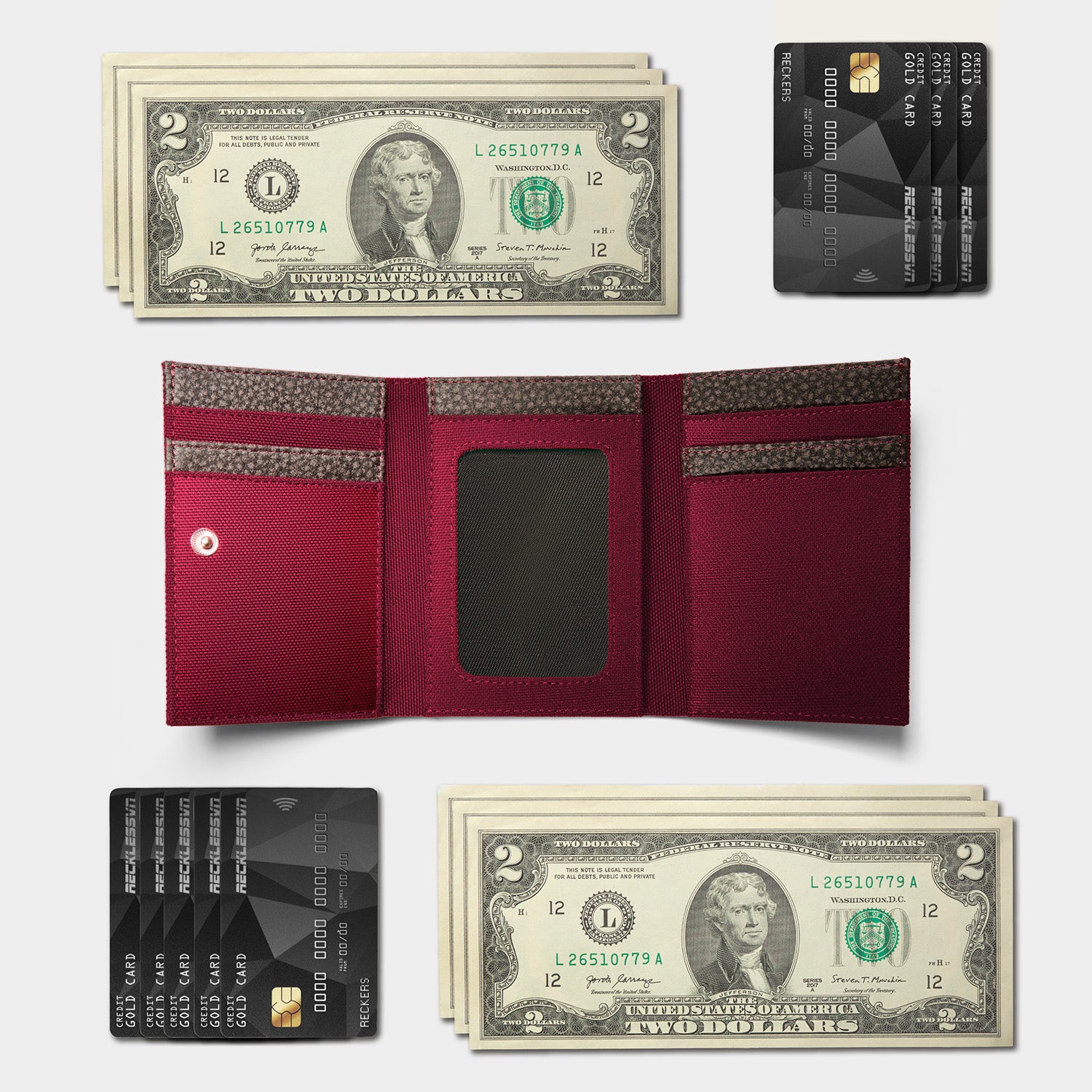 • Can hold 3-5 cards & 30-40 folded bills